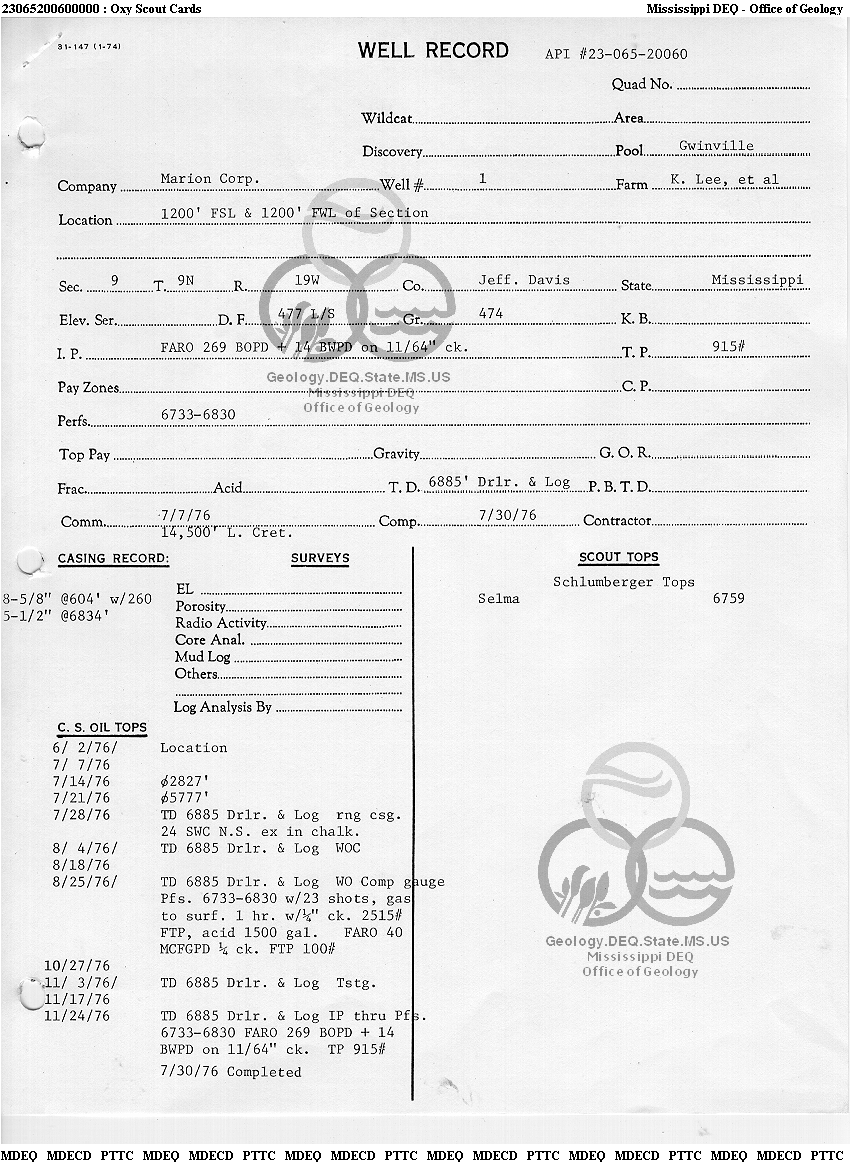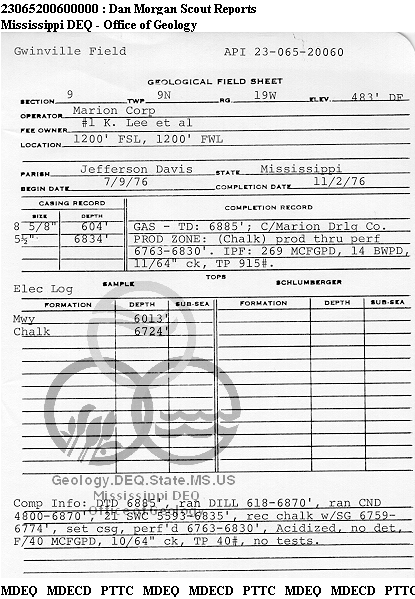 | 1 | 23065200600000 | MARION CORP. | K LEE ETAL | 1 | Production |