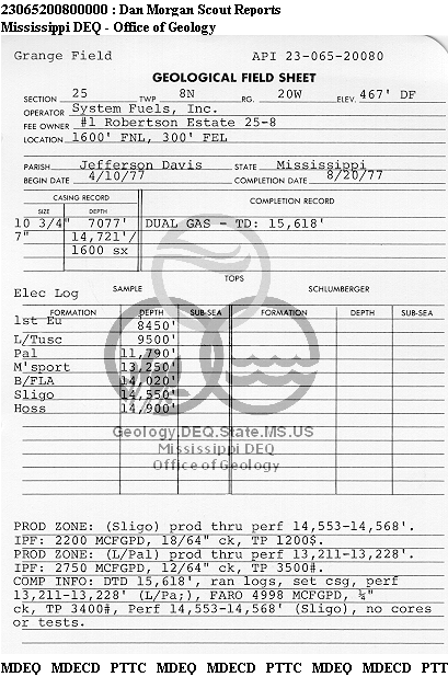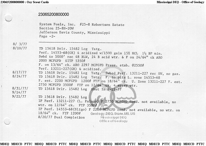 | 1 | 23065200800000 | PRUET PRODUCTION CO | ROBERTSON EST 25-8 | 1 | Production |
