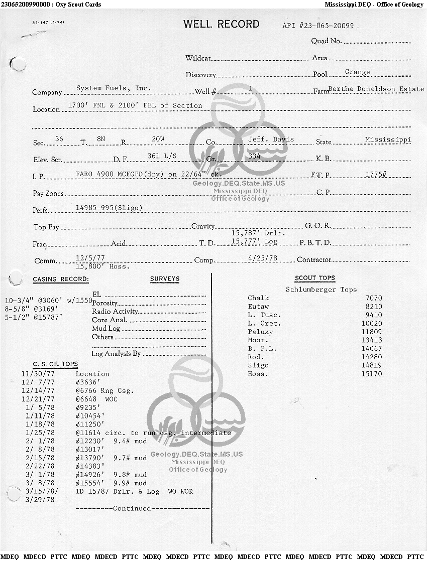 | 1 | 23065200990000 | SYSTEM FUELS INC | BERTHA DONALDSON | 1 | Production |