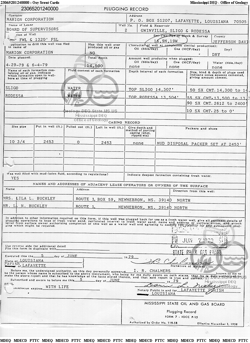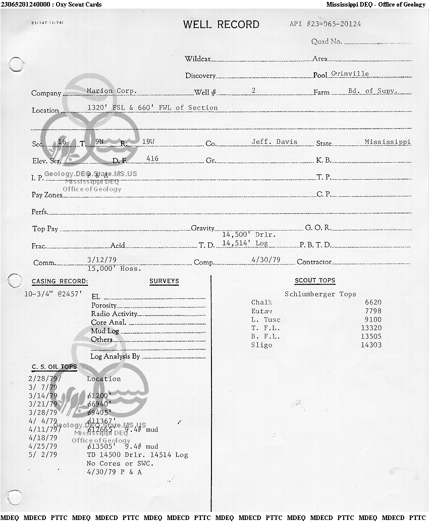 | 1 | 23065201240000 | MARION CORP. | BD OF SUPVR | 2 | Dry Hole |