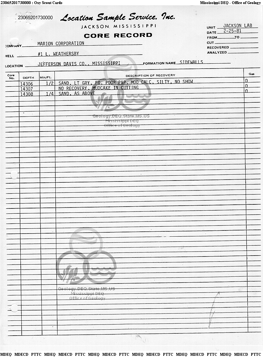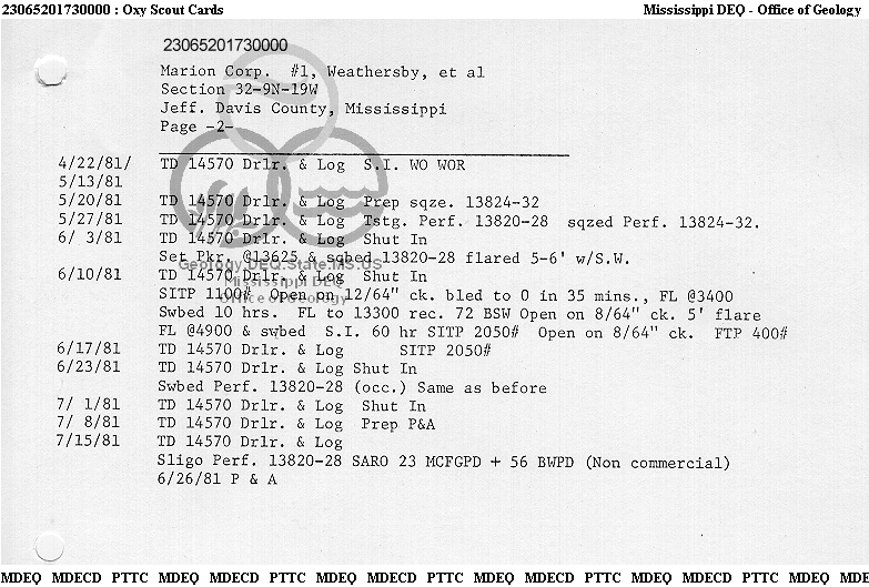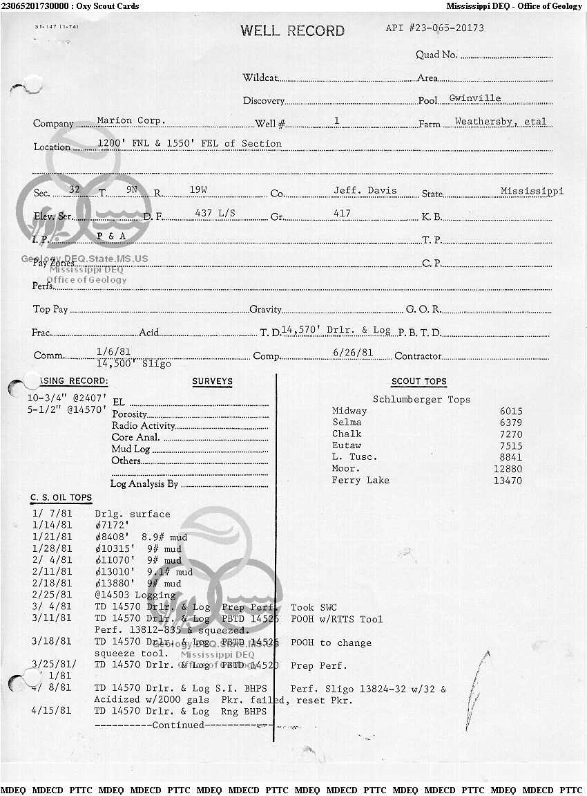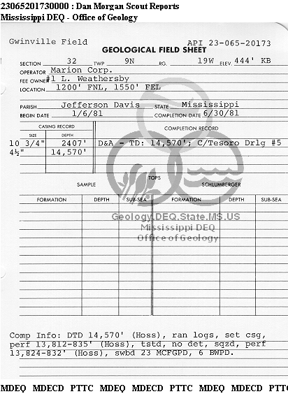 | 1 | 23065201730000 | MARION CORP. | WEATHERSBY L | 1 | Dry Hole |