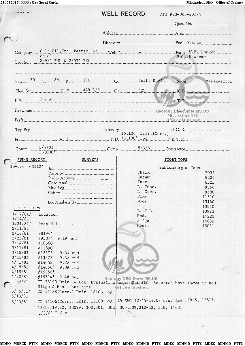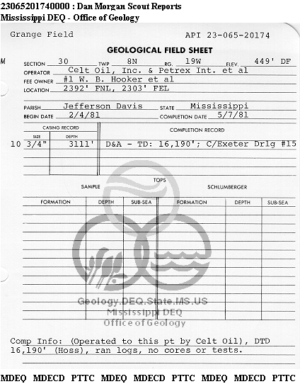 | 1 | 23065201740000 | CELT OIL, INC. | HOOKER W B ETAL | 1 | Dry Hole |