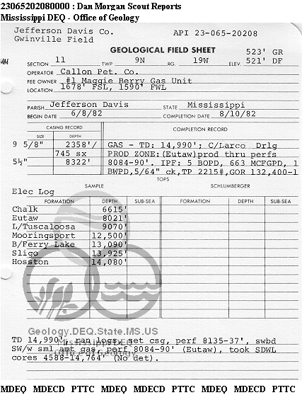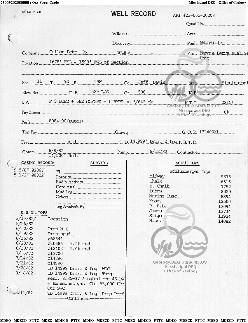 | 1 | 23065202080000 | CALLON PETROLEUM CO. | Maggie Berry GU | 1 | Production |