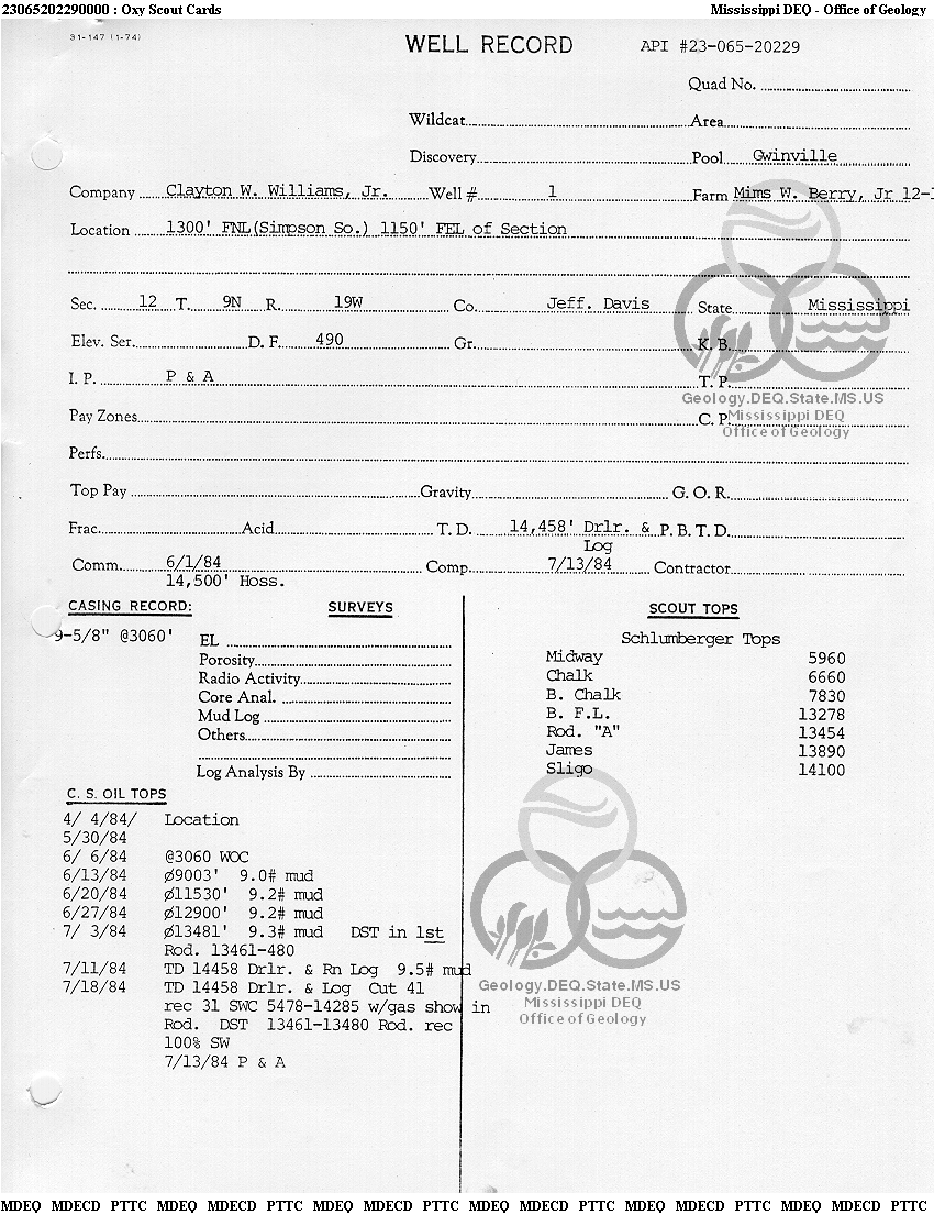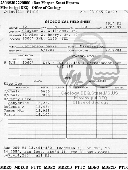 | 1 | 23065202290000 | CLAYTON WILLIAMS ENERGY, INC. | BERRY M W JR 12-1 | 1 | Dry Hole |