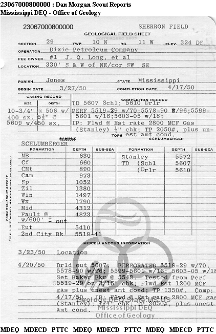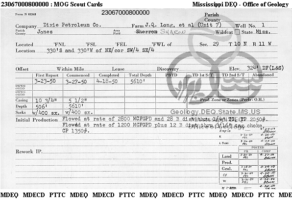 | 1 | 23067000800000 | TAZA ENERGY, INC. | J Q LONG | 1 | Production |