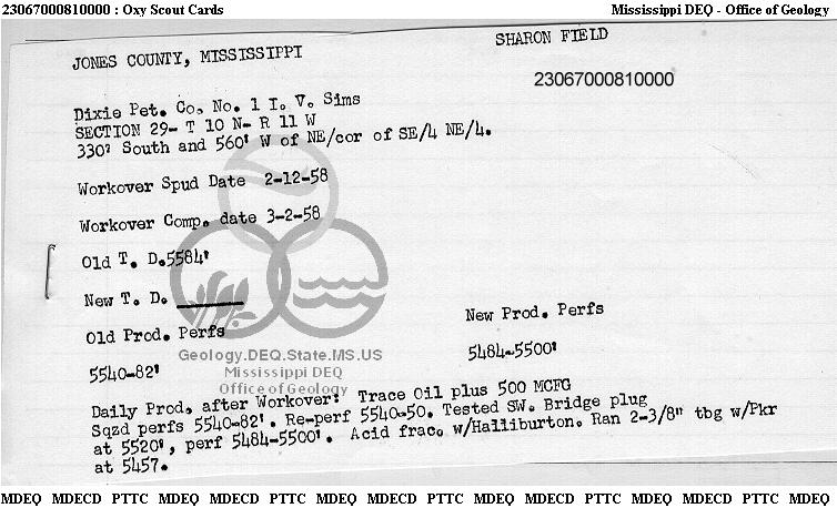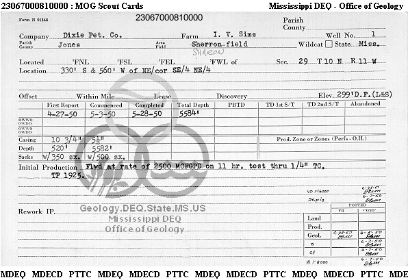 | 1 | 23067000810000 | TAZA ENERGY, INC. | I V SIMS | 1 | Production |