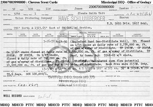 | 1 | 23067003990000 | UNION PRODUCING CO. | CLAUDE SMITH | 1 | Production |