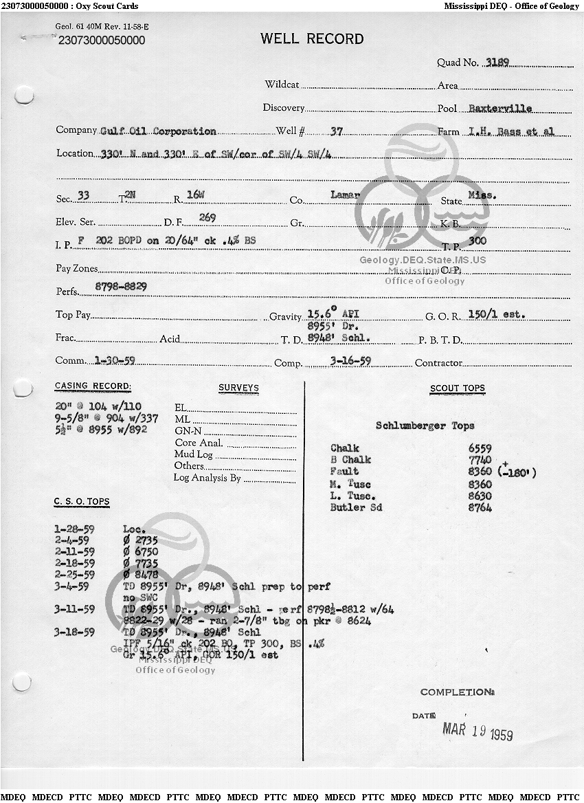 | 1 | 23073000050000 | TELLUS OPERATING GROUP LLC | I H BASS ETAL | 37 | Oil Production |
