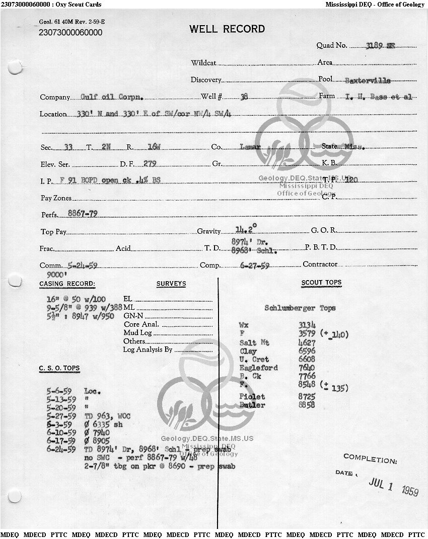 | 1 | 23073000060000 | GULF OIL CORP. | I H BASS ETAL | 38 | Oil Production |