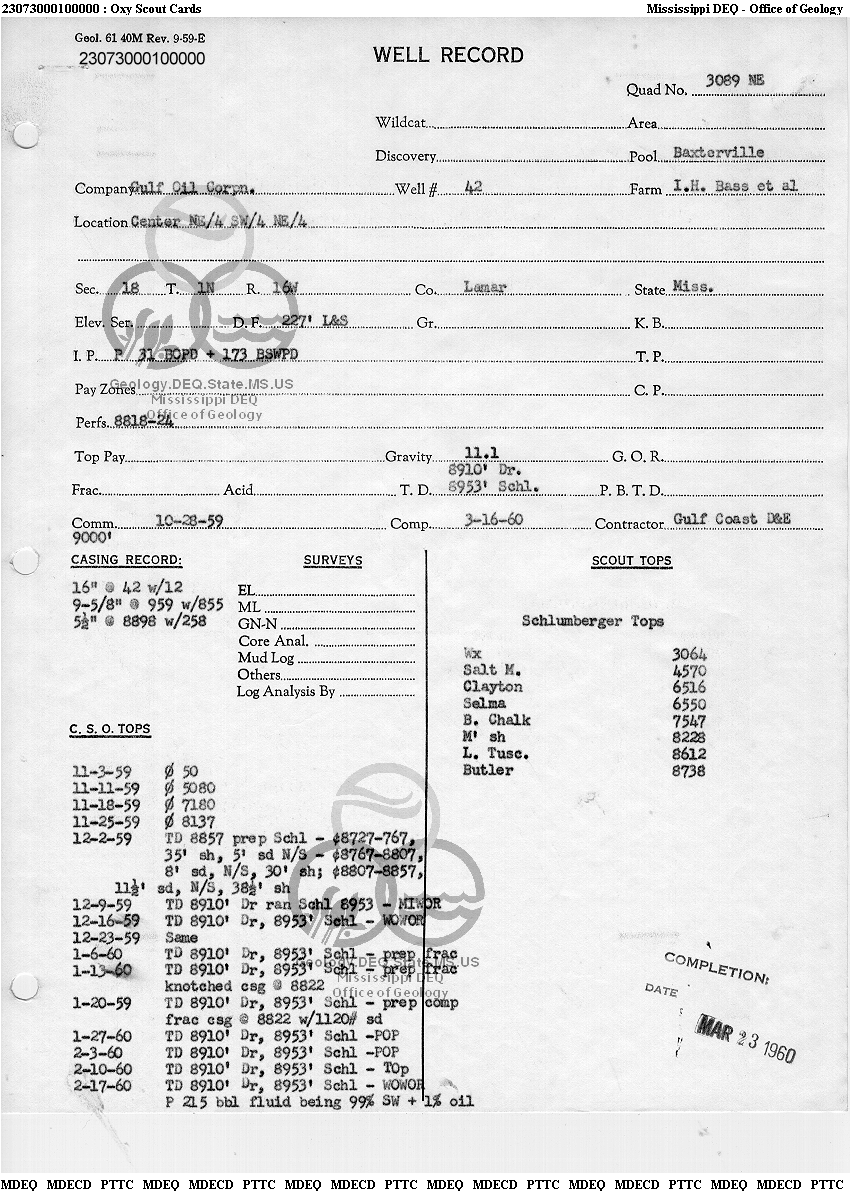 | 1 | 23073000100000 | GULF OIL CORP. | I H BASS ETAL | 42 | Oil Production |