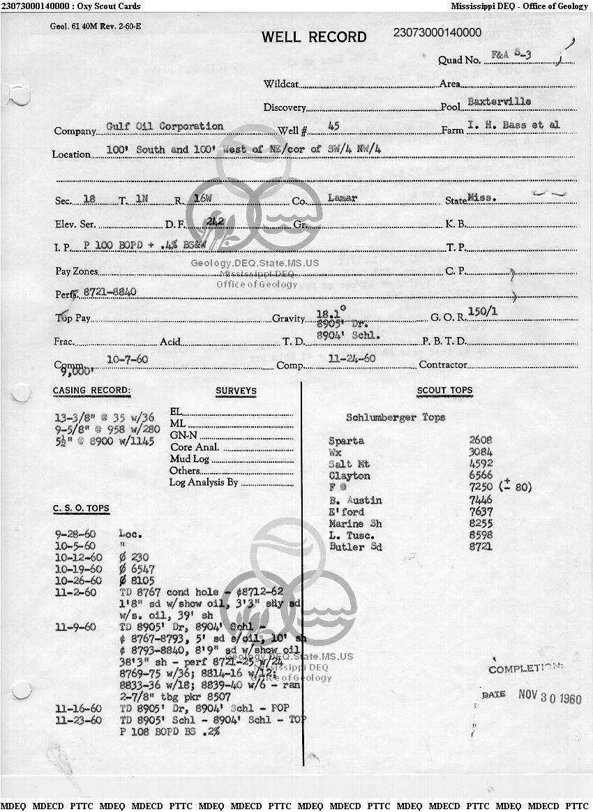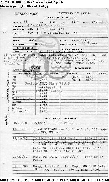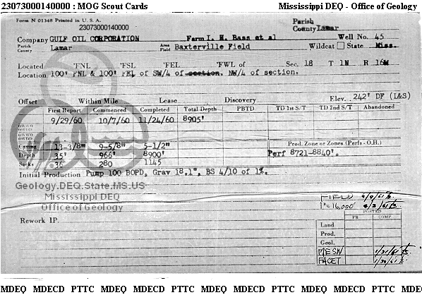 | 1 | 23073000140000 | TELLUS OPERATING GROUP LLC | I H BASS ETAL | 45 | Oil Production |