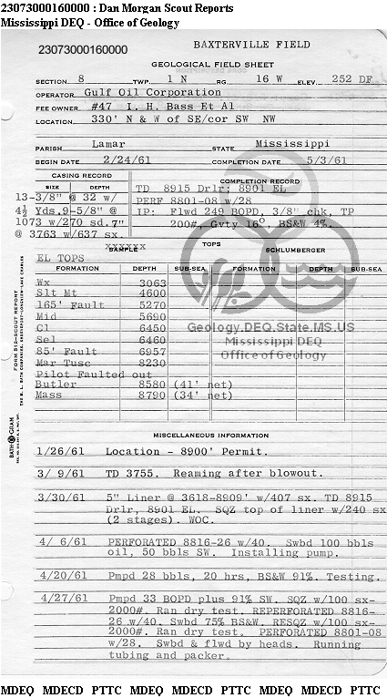 | 1 | 23073000160000 | TELLUS OPERATING GROUP LLC | I H BASS ETAL | 47 | Oil Production |