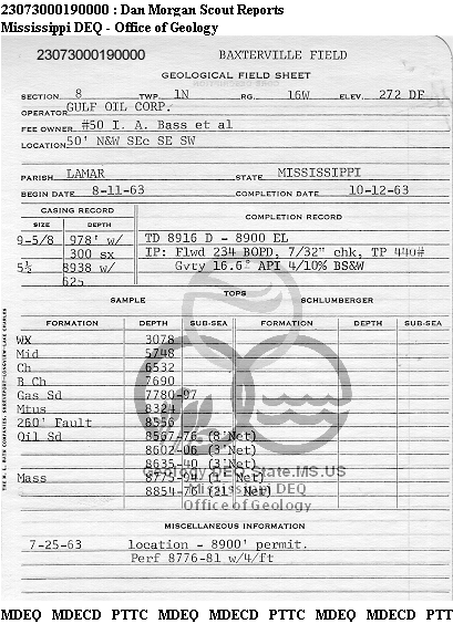 | 1 | 23073000190000 | TELLUS OPERATING GROUP LLC | I H BASS ETAL | 50 | Oil Production |