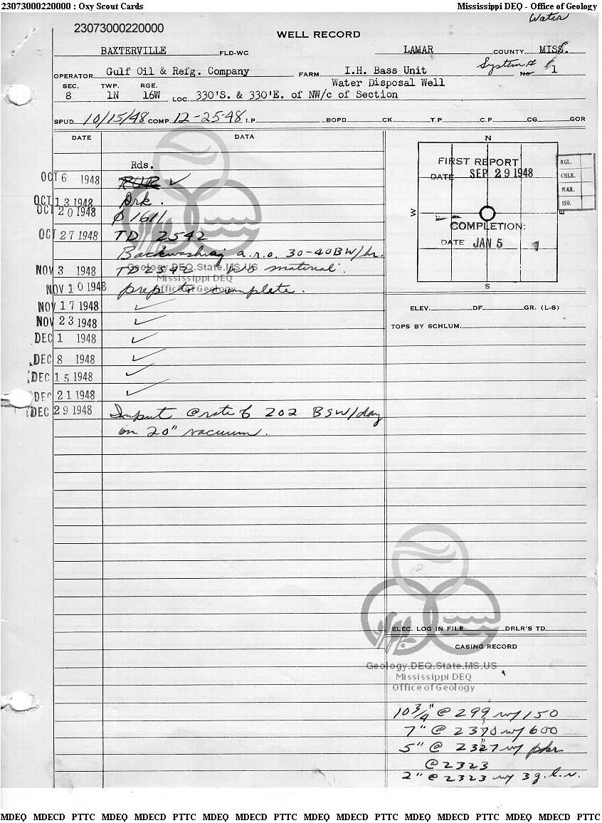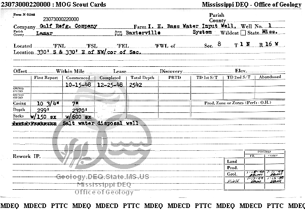 | 1 | 23073000220000 | PENNZOIL EXPL & PROD CO -TX | WWS 1 WELL | 1 | Disposal |