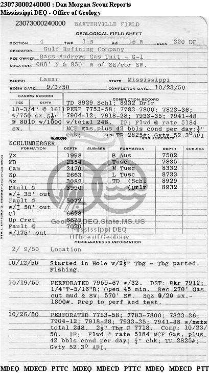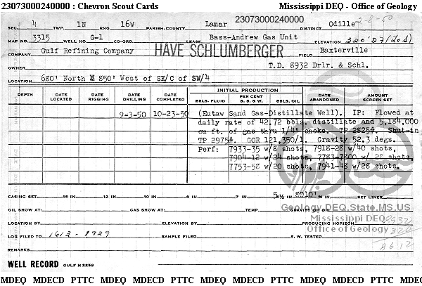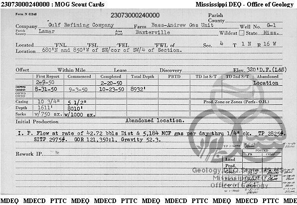 | 1 | 23073000240000 | GULF OIL CORP. | BASS-ANDREW GU | G-1 | Production |
