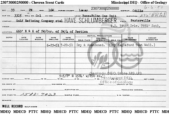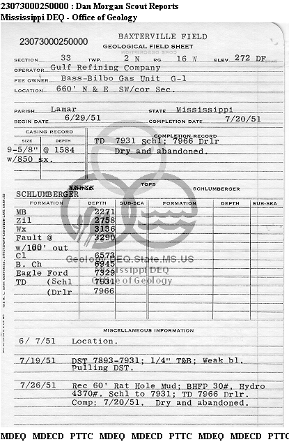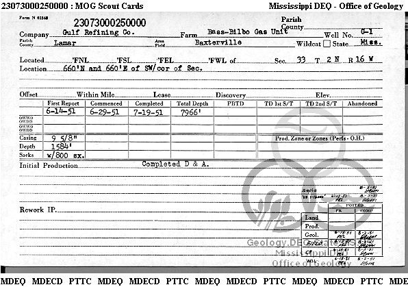 | 1 | 23073000250000 | GULF OIL CORP. | BASS-BILBO GAS UNIT | G-1 | Dry Hole |
