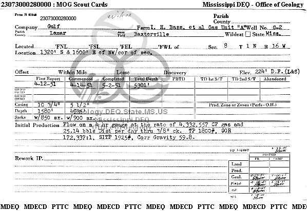 | 1 | 23073000280000 | GULF OIL CORP. | BASS ETAL GAS UN A | G-2 | Production |