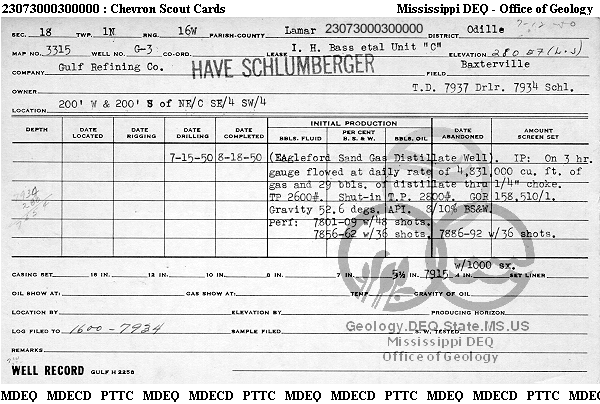 | 1 | 23073000300000 | TELLUS OPERATING GROUP LLC | BASS ETAL GAS UN C | G-3 | Production |