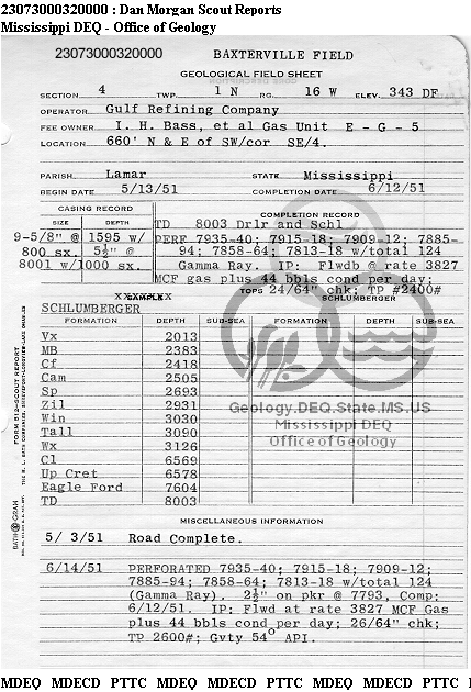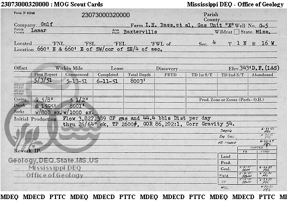 | 1 | 23073000320000 | GULF OIL CORP. | BASS ETAL GAS UN E | G-5 | Production |