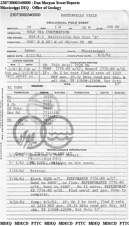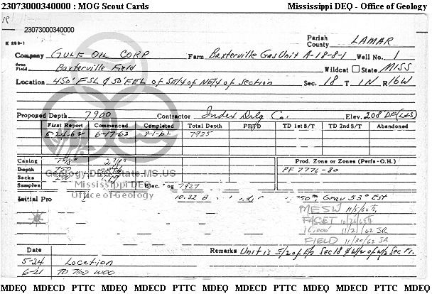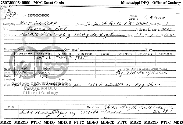 | 1 | 23073000340000 | GULF OIL CORP. | BAXTERVILLE GS "A" | 18-8-1 | Production |
