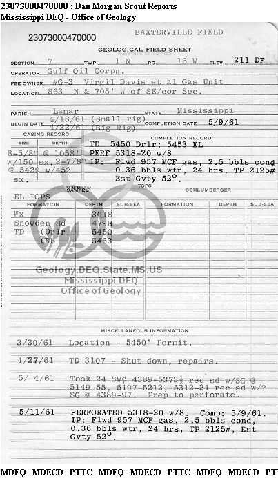 | 1 | 23073000470000 | TELLUS OPERATING GROUP LLC | V DAVIS G U ETAL | G-3 | Production |