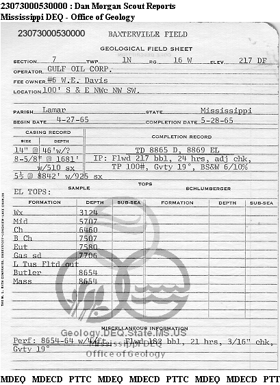 | 1 | 23073000530000 | TELLUS OPERATING GROUP LLC | W E DAVIS | 6 | Production |