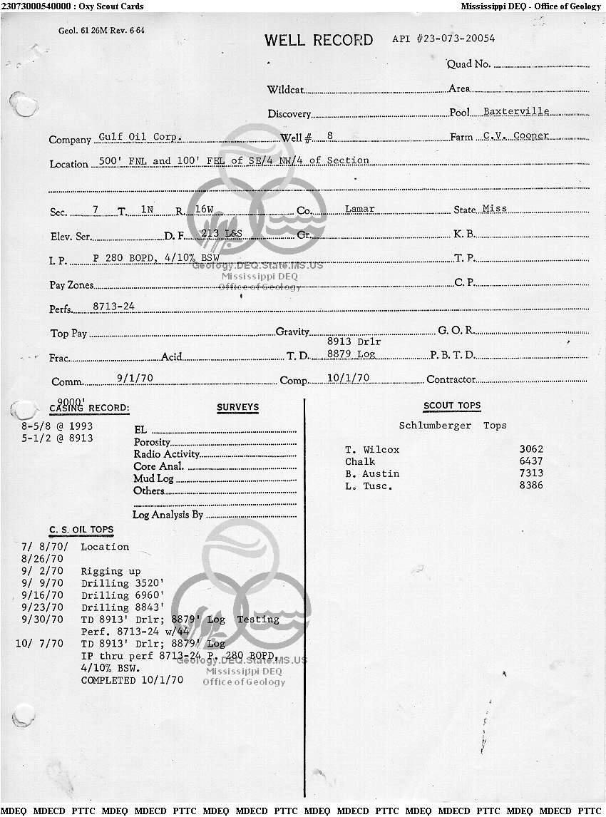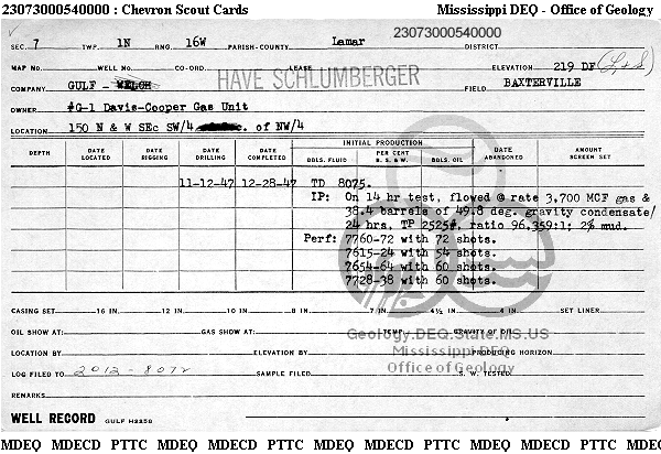 | 1 | 23073000540000 | TELLUS OPERATING GROUP LLC | DAVIS-COOPER GU | G-1 | Production |