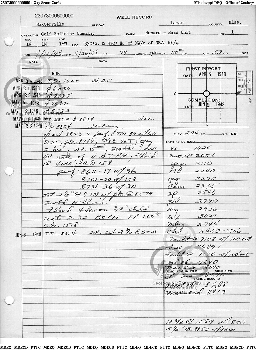 | 1 | 23073000600000 | TELLUS OPERATING GROUP LLC | HOWARD-BASS UNIT | 1 | Production |