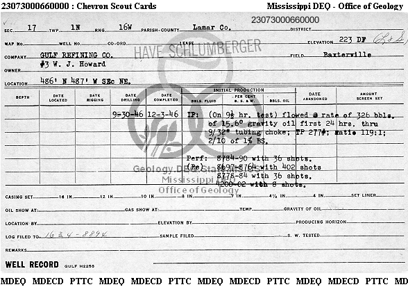 | 1 | 23073000660000 | TELLUS OPERATING GROUP LLC | W J HOWARD | 3 | Oil Production |