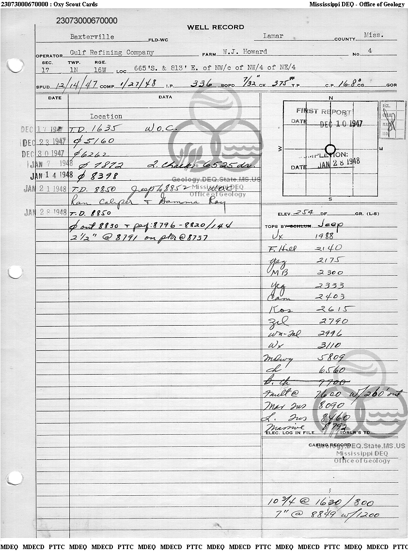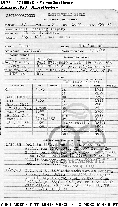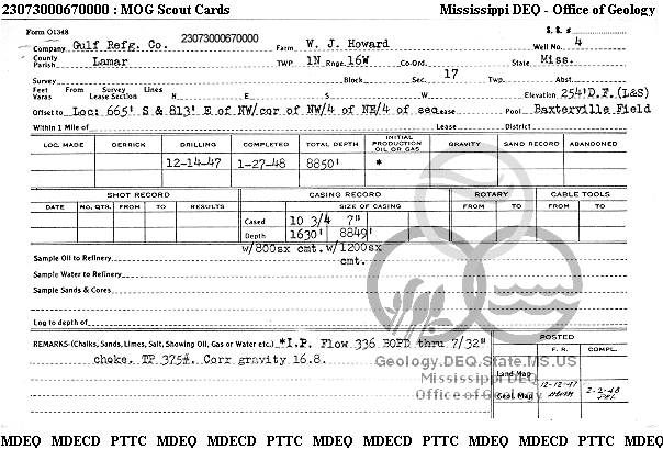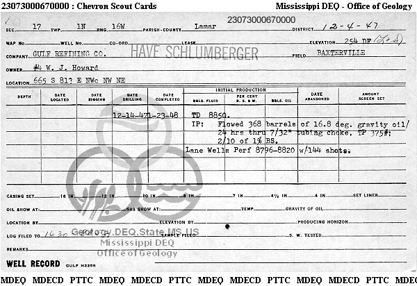 | 1 | 23073000670000 | GULF OIL CORP. | W J HOWARD | 4 | Oil Production |