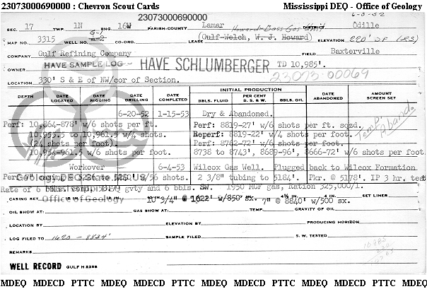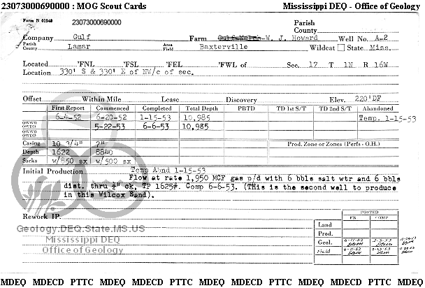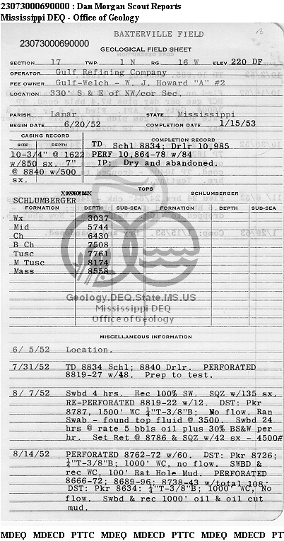 | 1 | 23073000690000 | PENNZOIL PETROLEUM CO | HOWARD-BASS et al GU | G-1 | Production |
