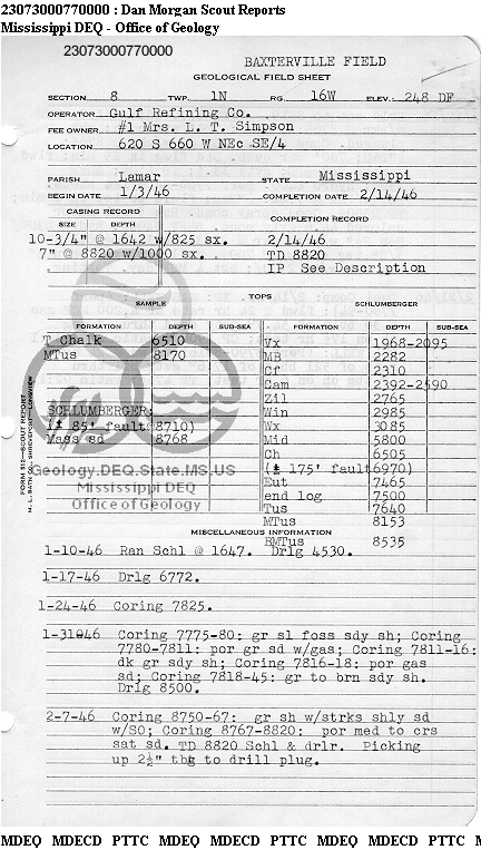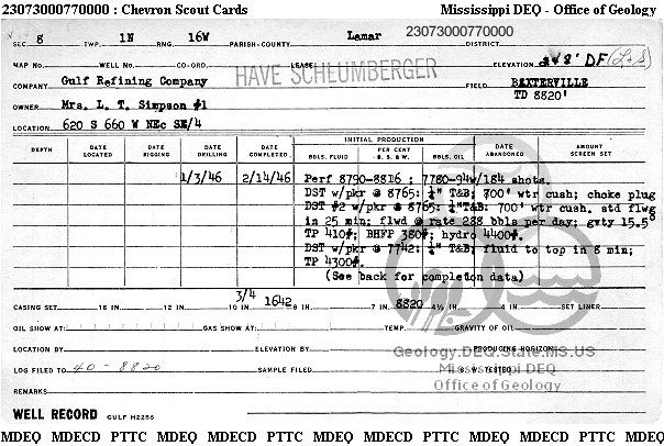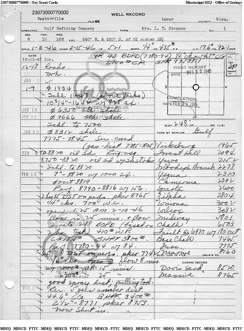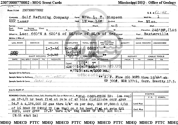 | 1 | 23073000770000 | TELLUS OPERATING GROUP LLC | MRS L T SIMPSON | 1 | Oil Production |