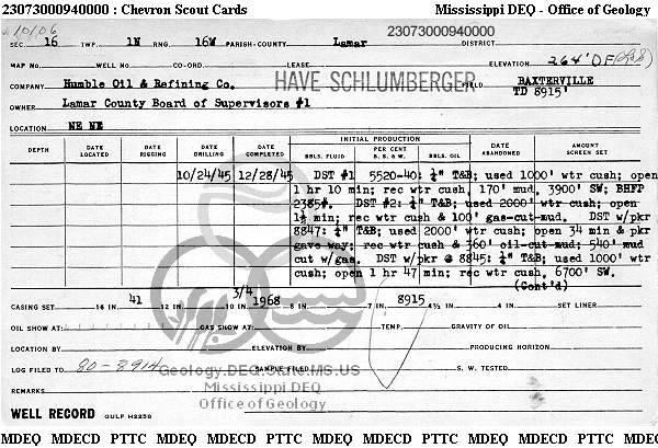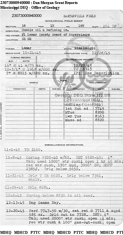 | 1 | 23073000940000 | HUMBLE OIL & REFINING CO. | LAMAR CTY BOS | 1 | Oil Production |