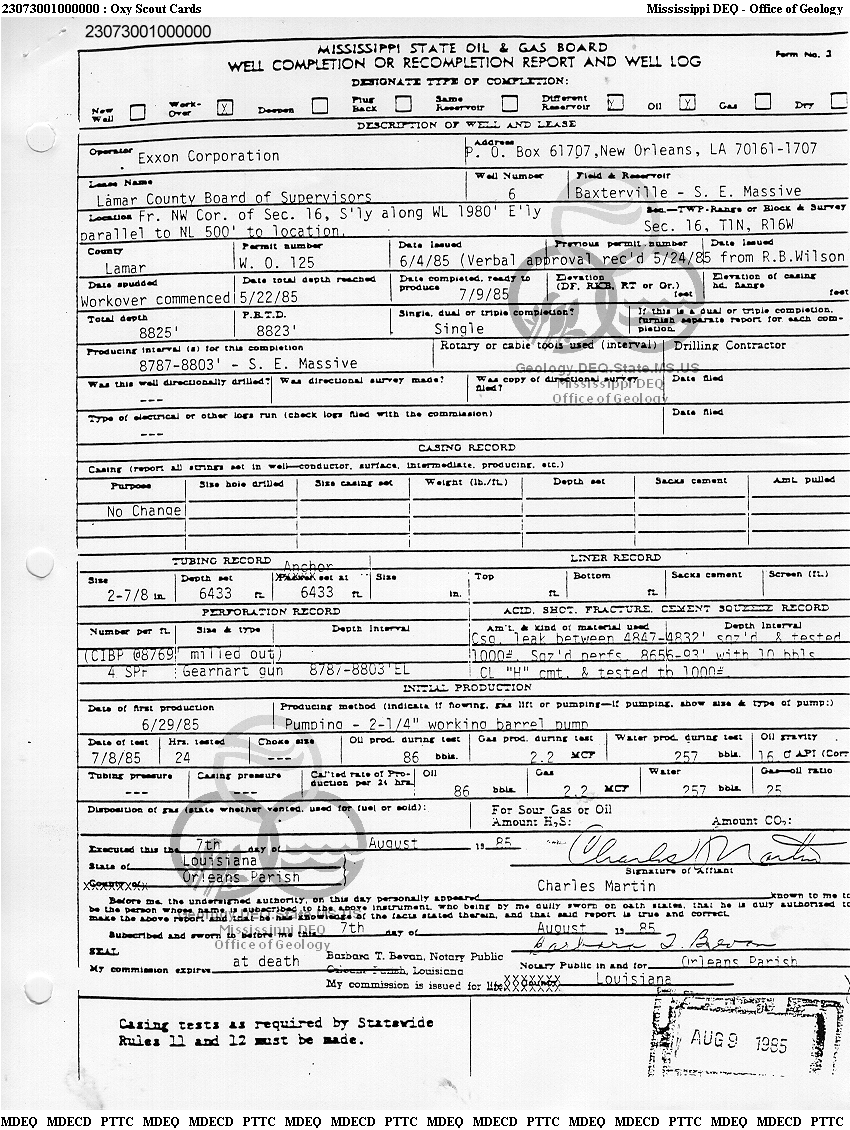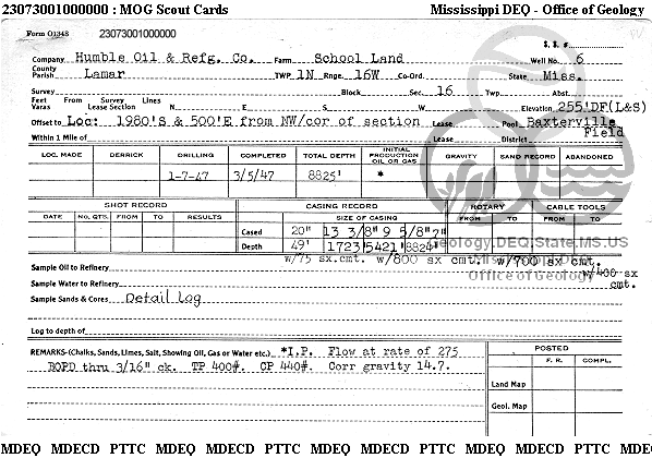 | 1 | 23073001000000 | TEXAS PETROLEUM INVESTMENT CO | LAMAR COUNTY BOS | 6 | Oil Production |