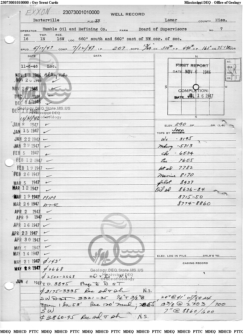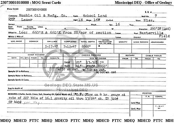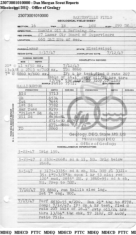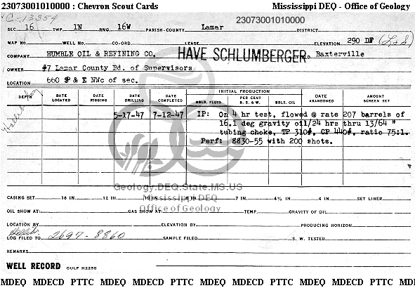 | 1 | 23073001010000 | TEXAS PETROLEUM INVESTMENT CO | LAMAR CO. BD. OF SUPERVISORS | 7 | Production |