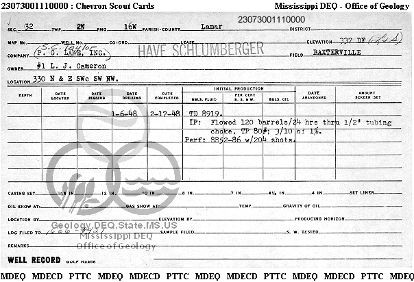 | 1 | 23073001110000 | CWF ASSOCIATES, LTD. | L J CAMERON | 1 | Oil Production |