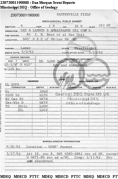 | 1 | 23073001190000 | LEE,LADNER & WILSON | I H BASS ETAL GU | 1 | Dry Hole |