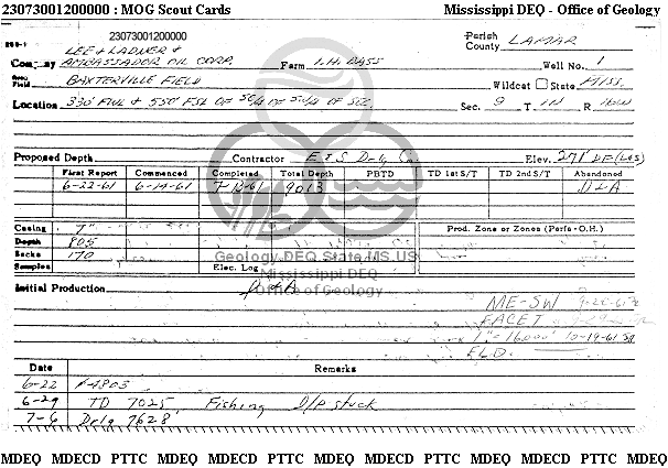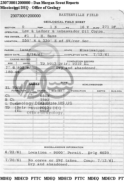 | 1 | 23073001200000 | LEE, INC | I H BASS | 1 | Dry Hole |