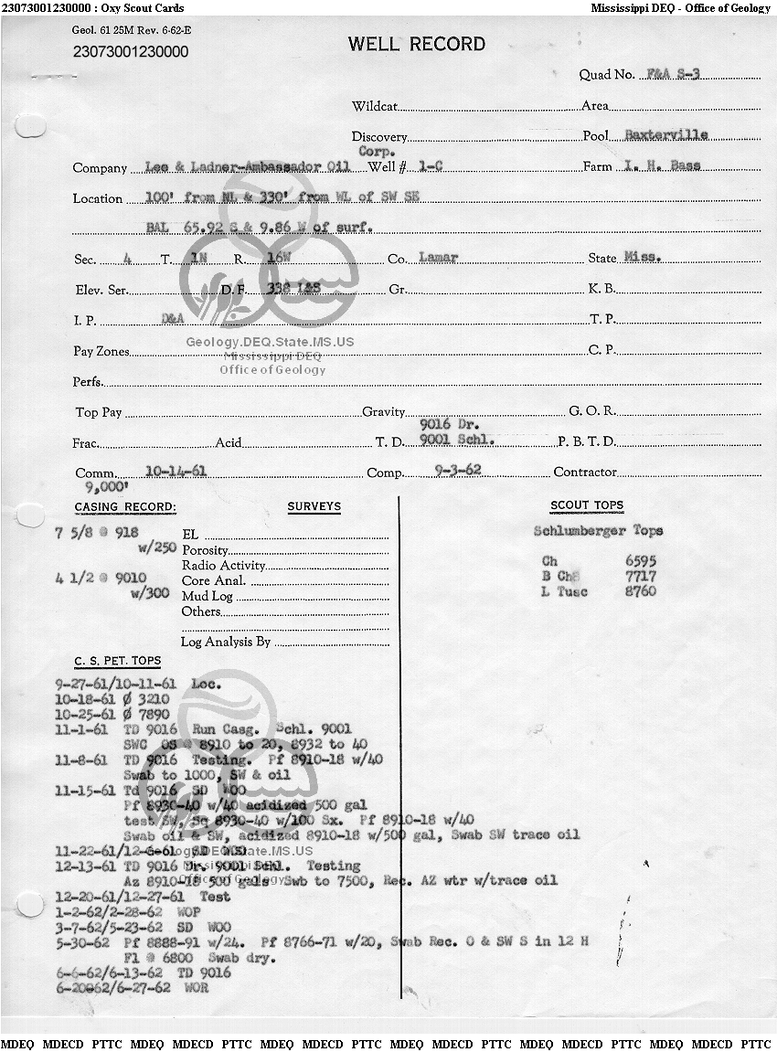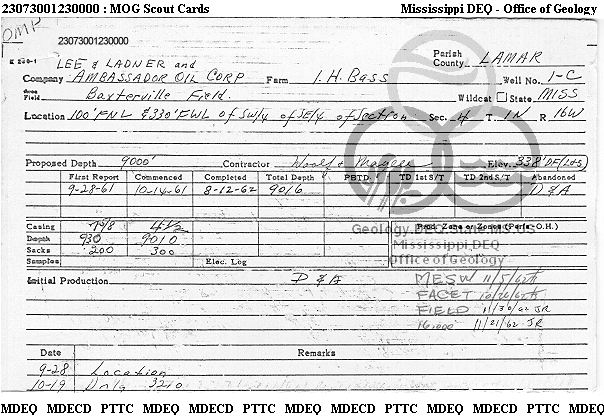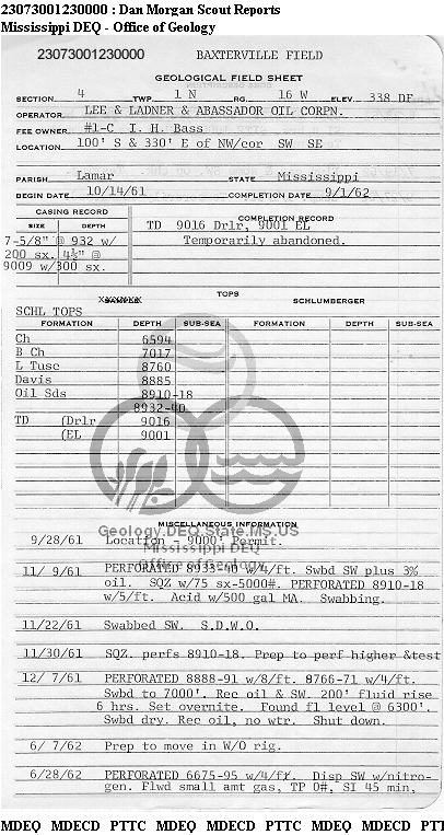 | 1 | 23073001230000 | LEE, INC | I H BASS | 1-C | Dry Hole |