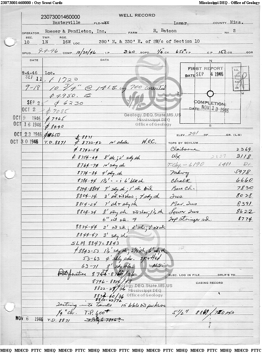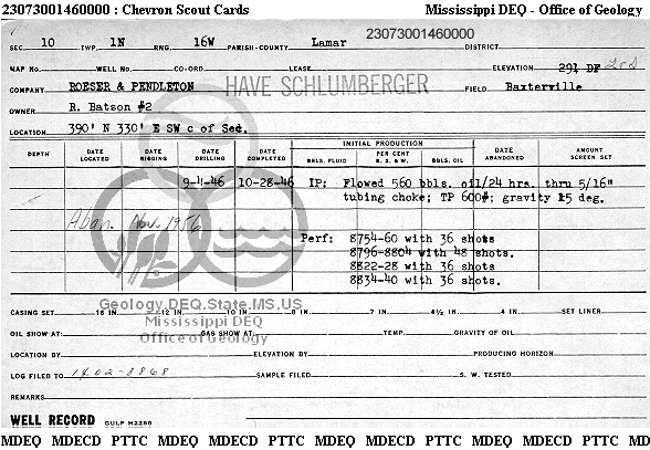 | 1 | 23073001460000 | MARSHALL YOUNG OIL CO | R BATSON ETAL | 2 | Oil Production |