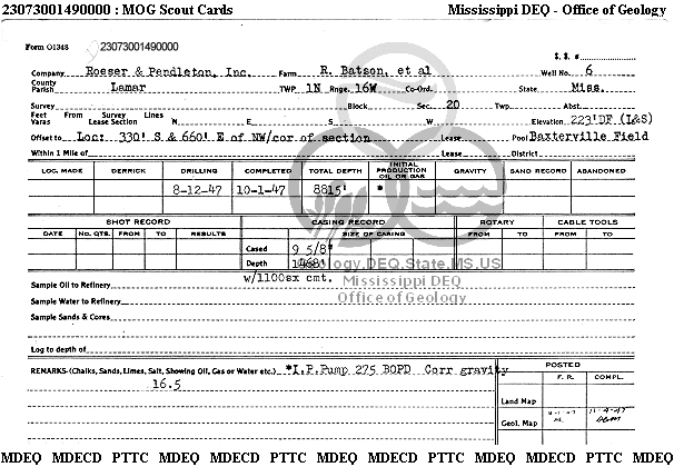 | 1 | 23073001490000 | MARSHALL YOUNG OIL CO | R BATSON ETAL | 6 | Oil Production |