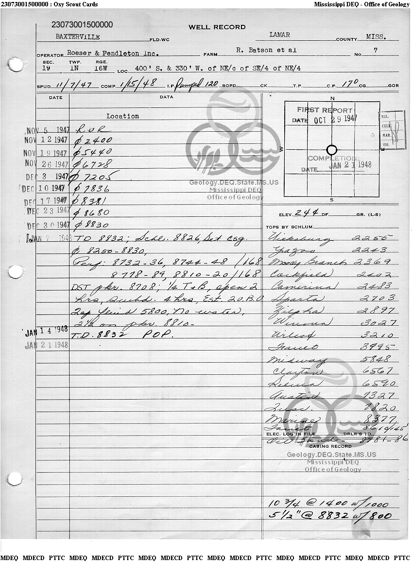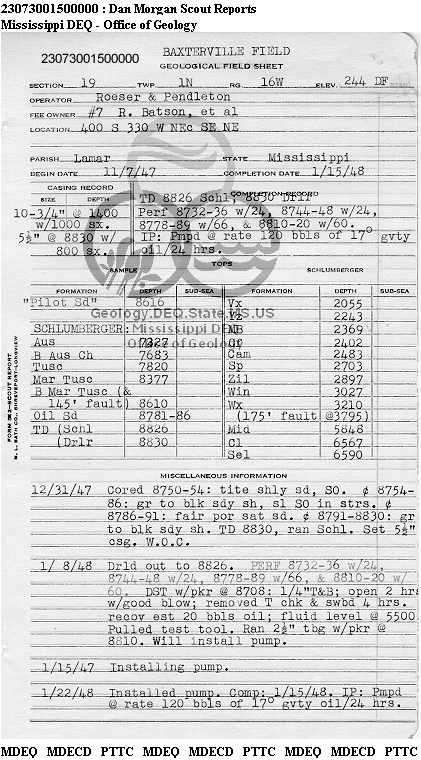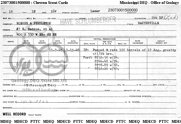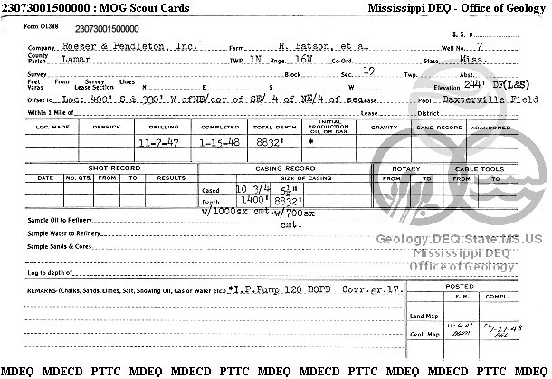 | 1 | 23073001500000 | TEXAS PETROLEUM INVESTMENT CO | R BATSON ETAL "M" | 7 | Production |