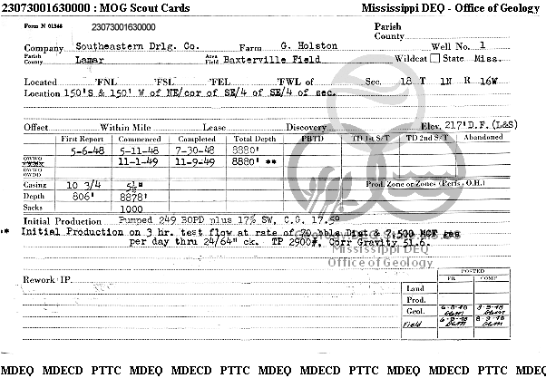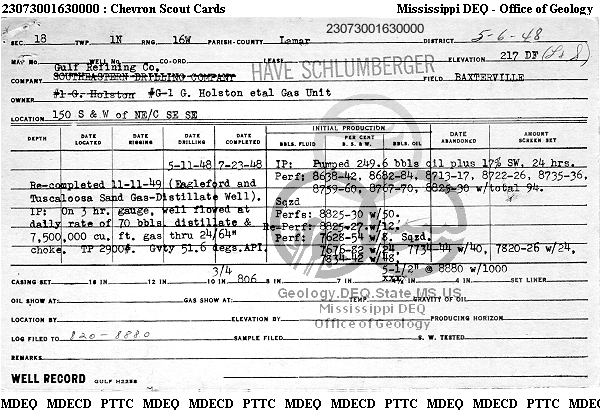 | 1 | 23073001630000 | GULF REFINING CO. | G HOLSTON et al GU | G-1 | Oil Production |