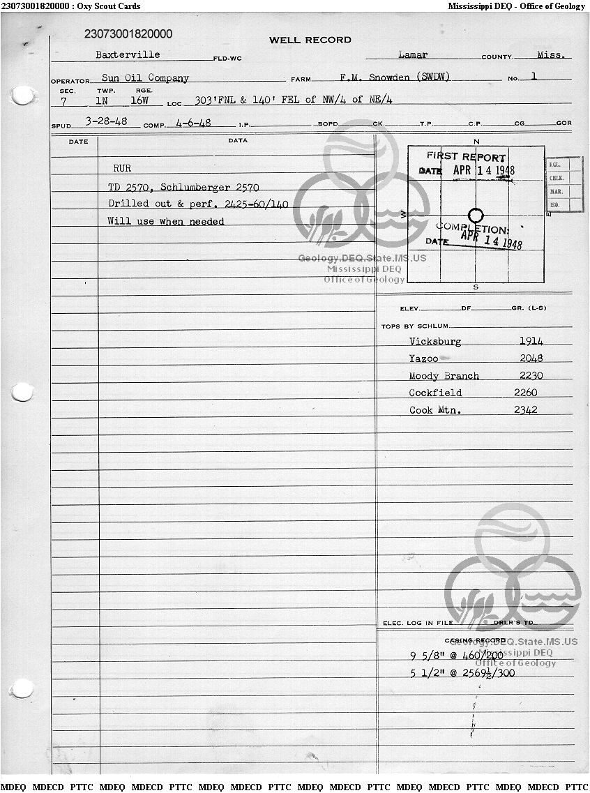 | 1 | 23073001820000 | ORYX ENERGY COMPANY | F. M. SNOWDEN | 14 | Disposal |