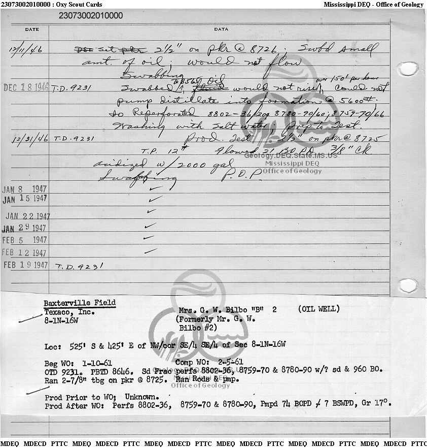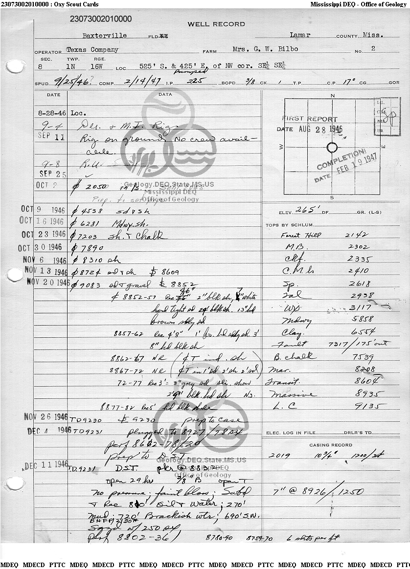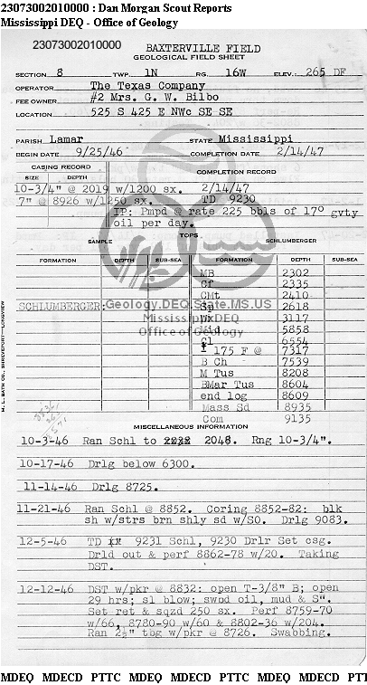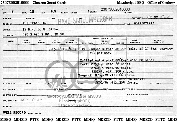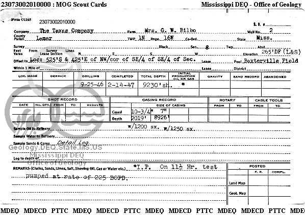 | 1 | 23073002010000 | TEXAS PETROLEUM INVESTMENT CO | MRS G W BILBO "B" | 2 | Oil Production |