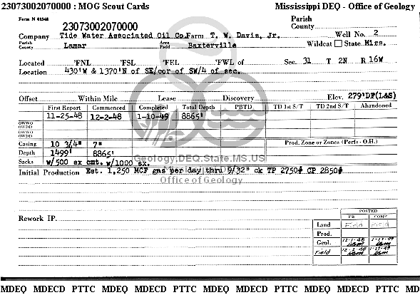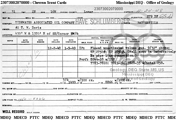 | 1 | 23073002070000 | GETTY OIL CO. | T W DAVIS JR | 2 | Production |