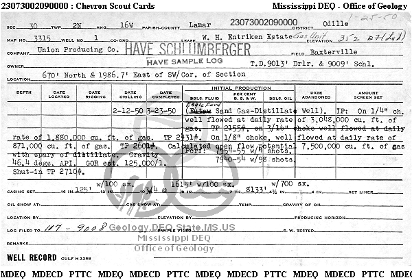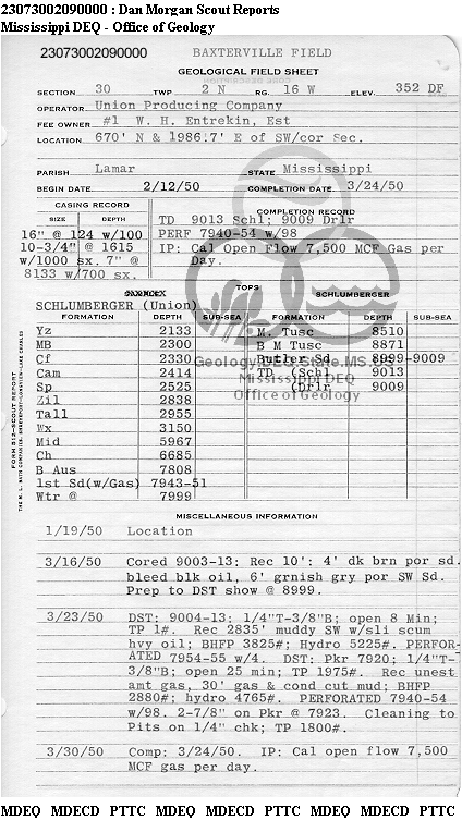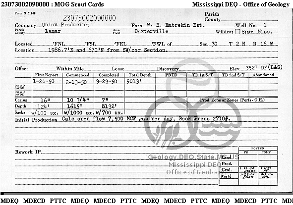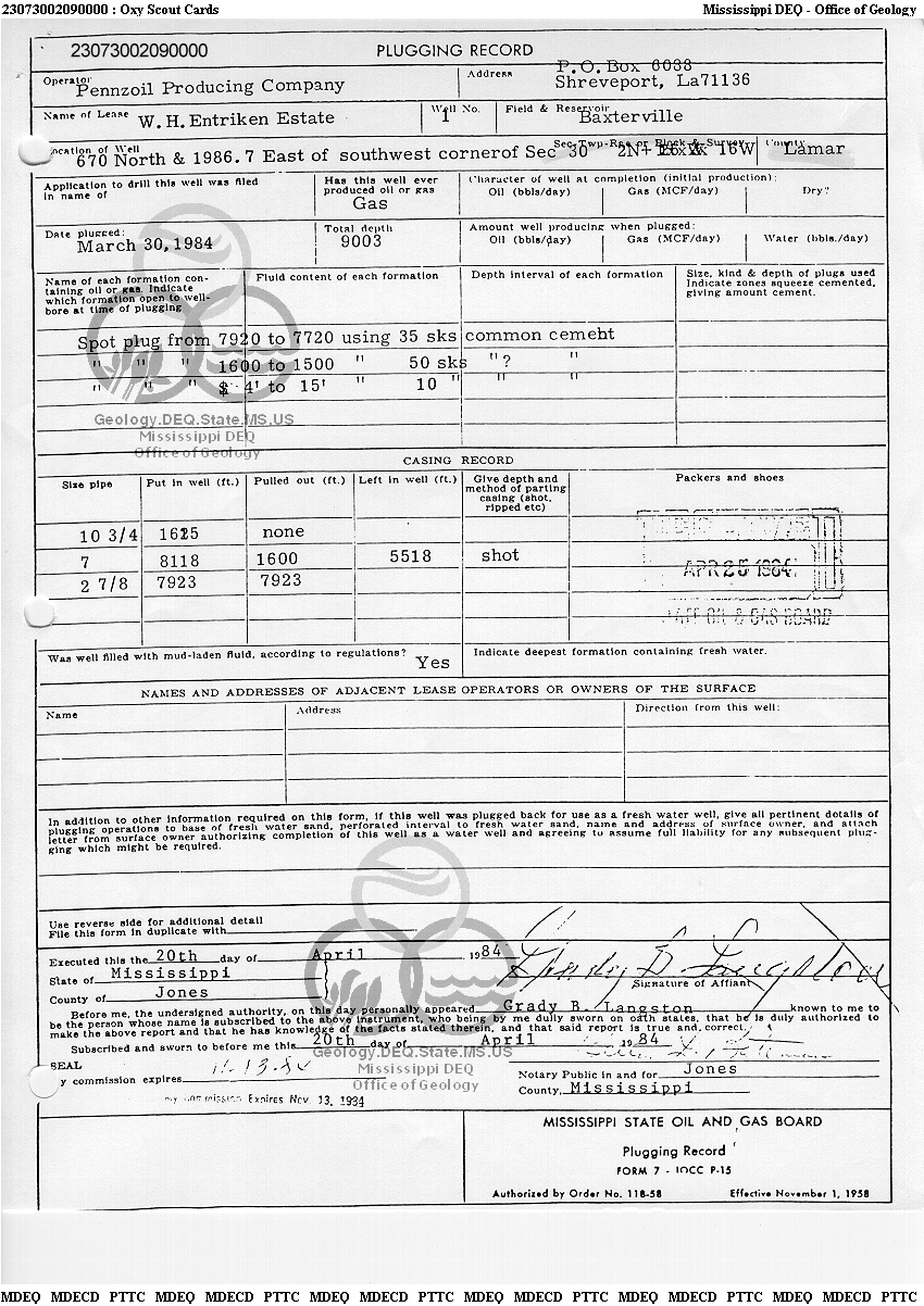| 1 | 23073002090000 | PENNZOIL EXPL & PROD CO -TX | W H ENTREKIN ESTATE | 1 | Production |
