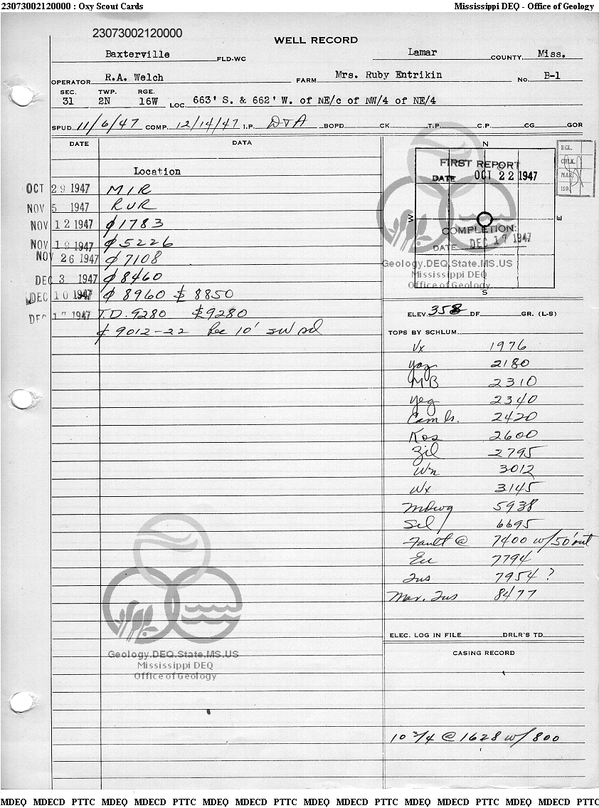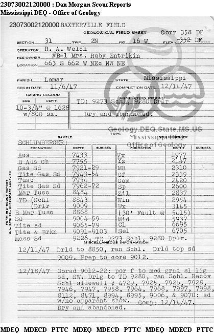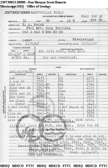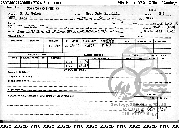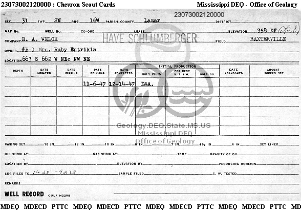 | 1 | 23073002120000 | GULF REFINING CO. | RUBY ENTRIKIN | B-1 | Dry Hole |