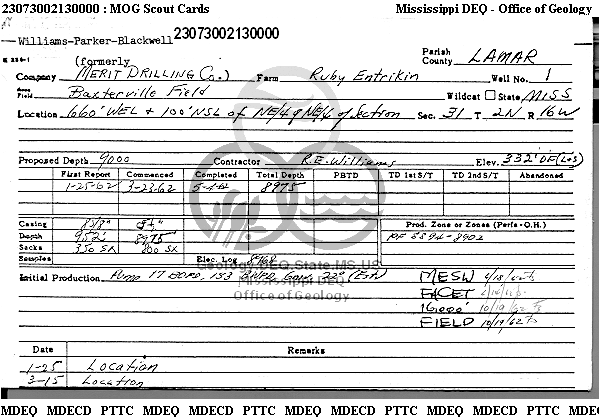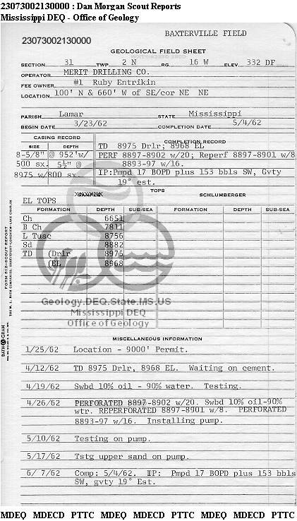 | 1 | 23073002130000 | BEAN RESOURCES, INC | RUBY ENTRIKIN | 1 | Oil Production |