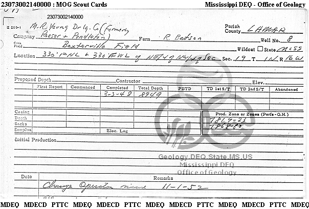| 1 | 23073002140000 | MARSHALL YOUNG OIL CO | R BATSON ETAL | 8 | Production |